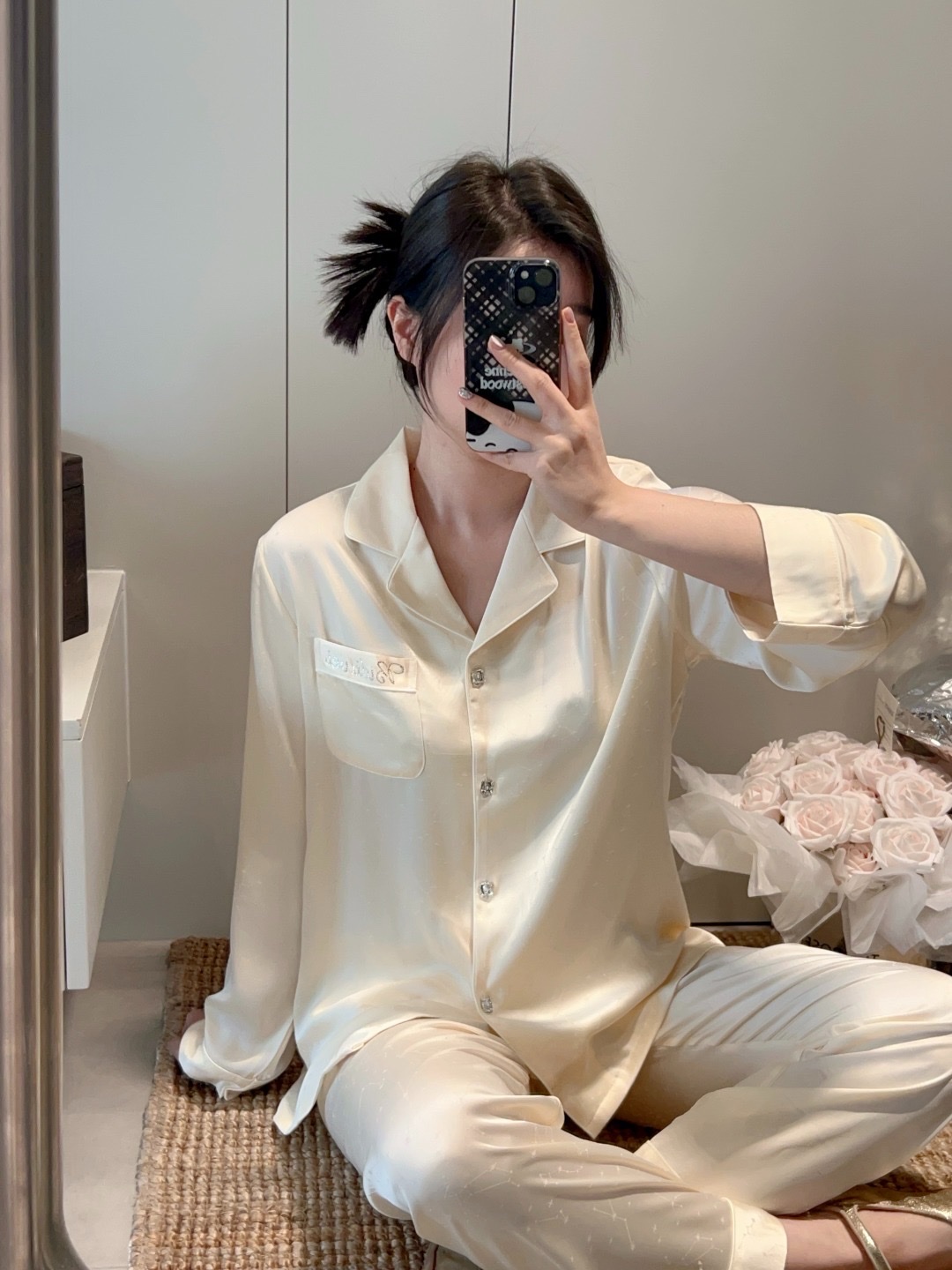 💛 BỘ PYJAMA LỤA KEM HOA VĂN TD02 – ĐỈNH CAO SANG TRỌNG VỚI CHI TIẾT ĐÍNH CƯỜM TINH XẢO 💛