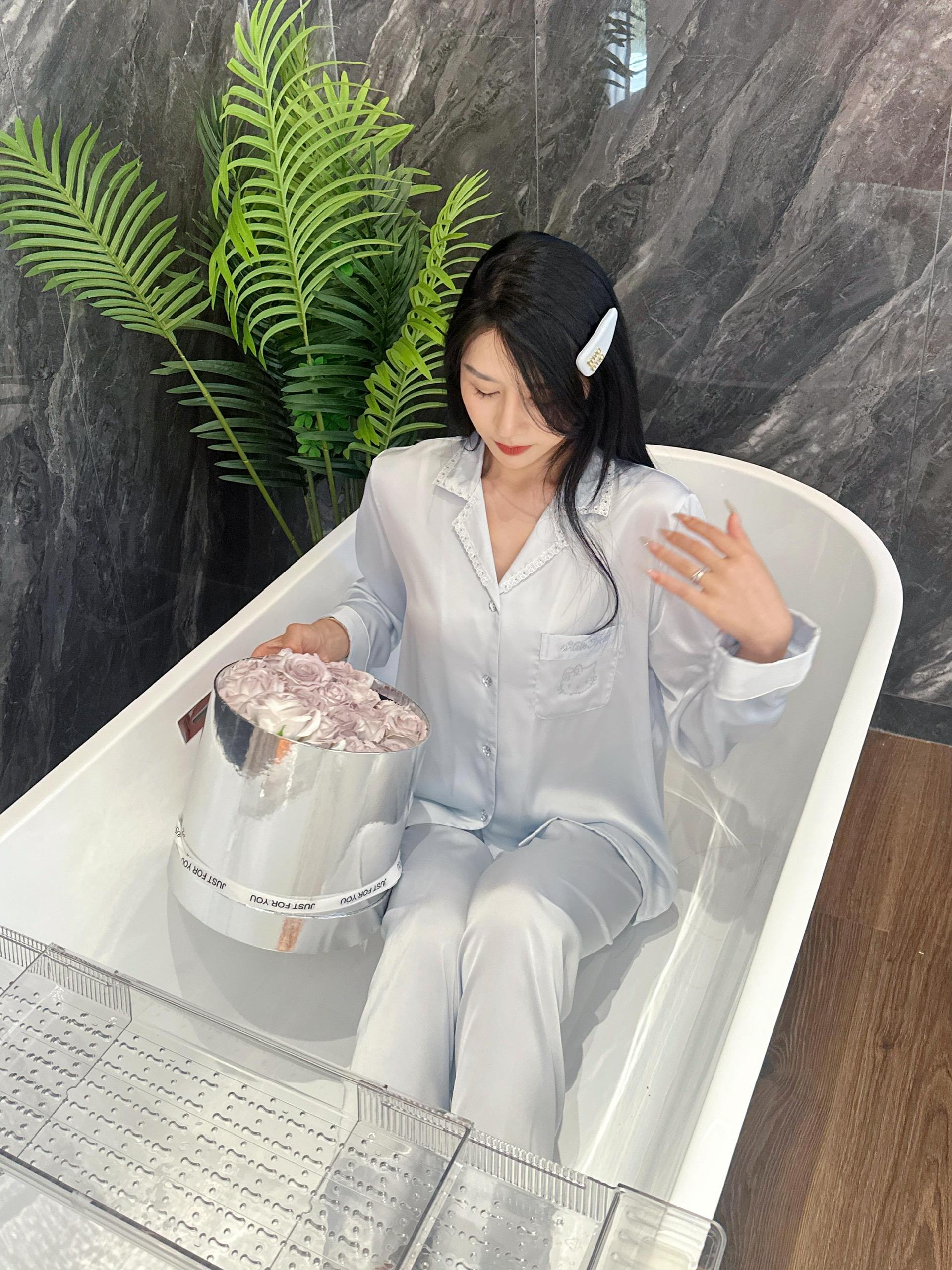 Sản phẩm gồm : 1 áo pijama tay dài + 1 quần lụa dài