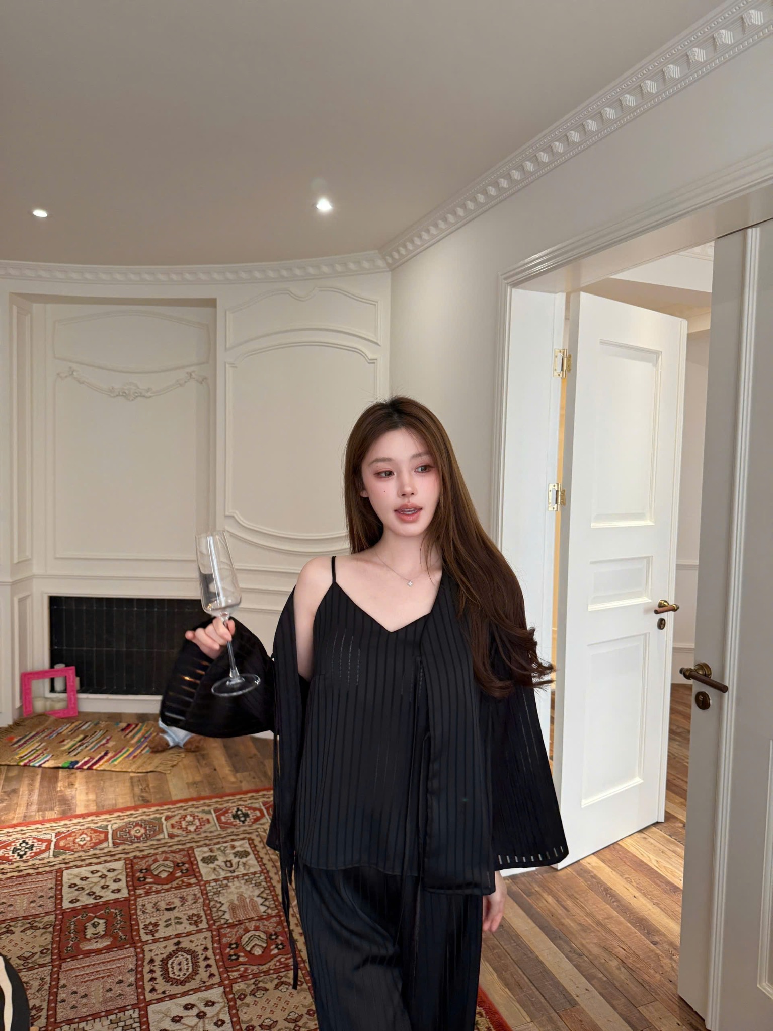 Sản phẩm: Set lụa 3 món (áo 2 dây + áo khoác + quần dài)
