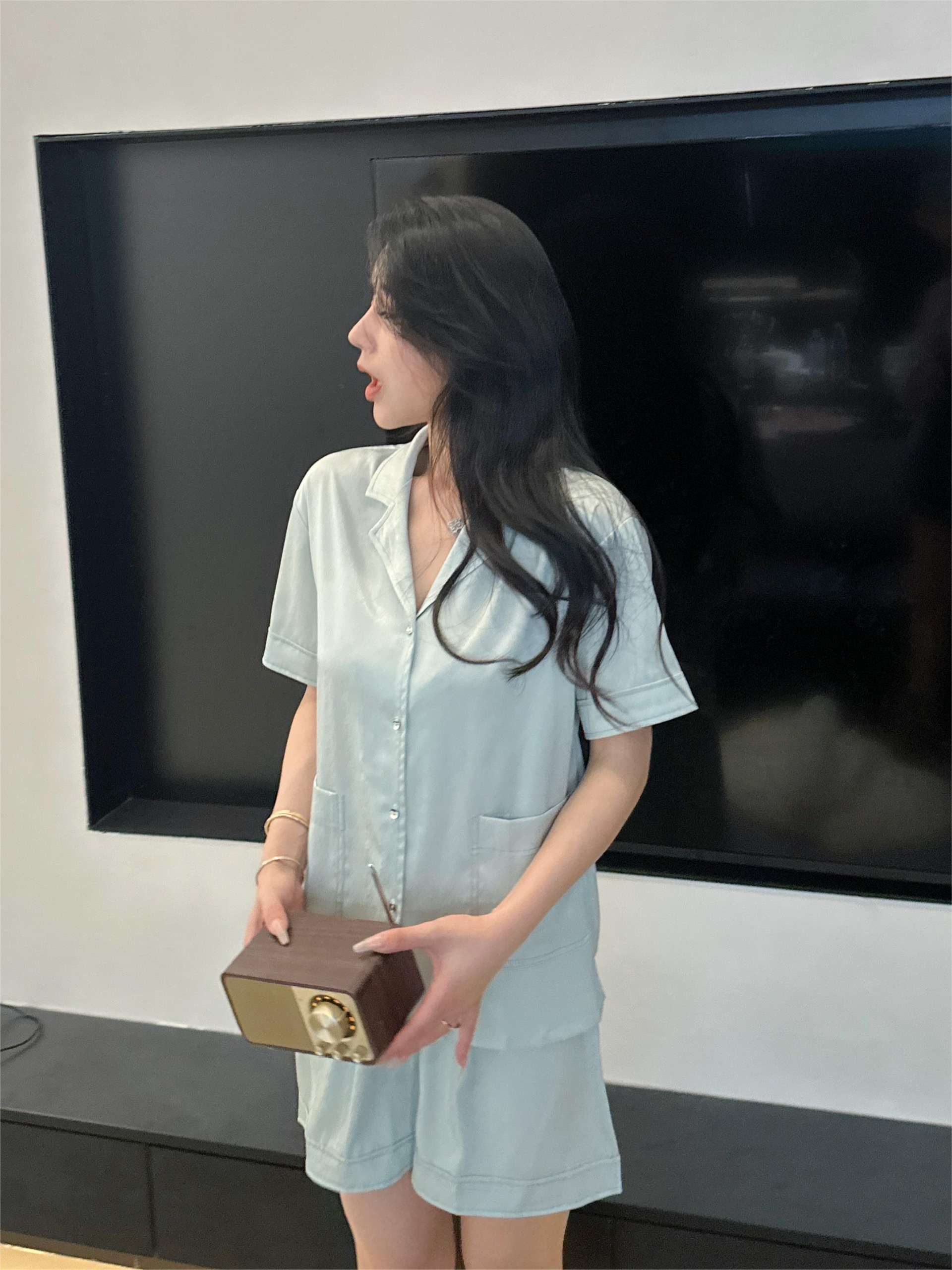 Đồ bộ ngủ Pyjama lụa xước tay ngắn quần ngắn NT08 bộ ngủ lụa vân xước pijama màu xanh ,trắng , tím style đơn giản có 2 túi áo tạo nên bộ trang phục đáng yêu cho người mặc