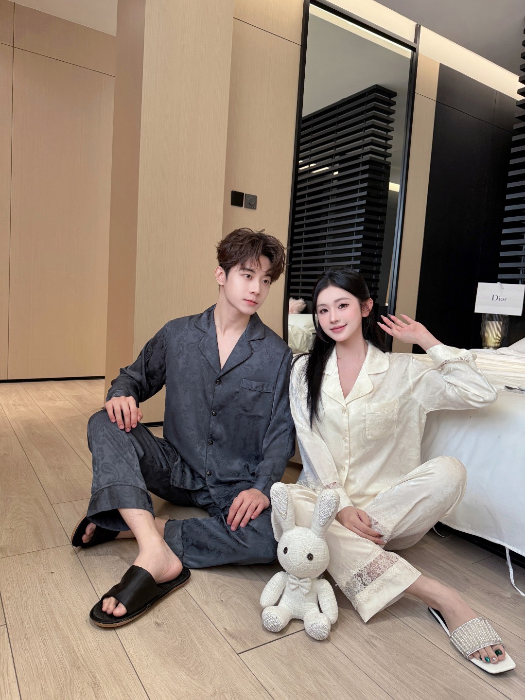 Set pyjama couple lụa cao cấp thiết kế tay dài quần dài sang trọng, họa tiết vân chìm tinh tế, form chuẩn Hàn Quốc. Phù hợp mặc nhà, mặc ngủ, du lịch, chụp hình couple hoặc làm quà tặng cho cặp đôi.