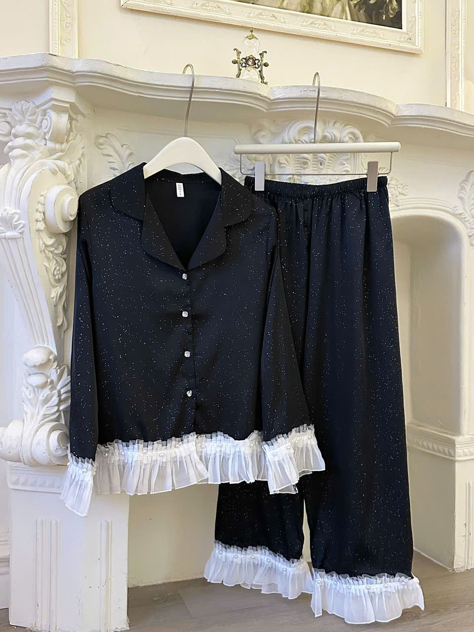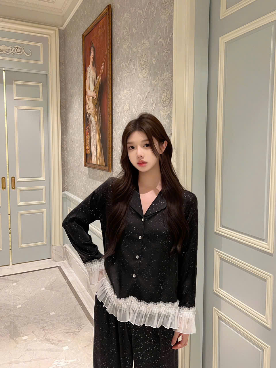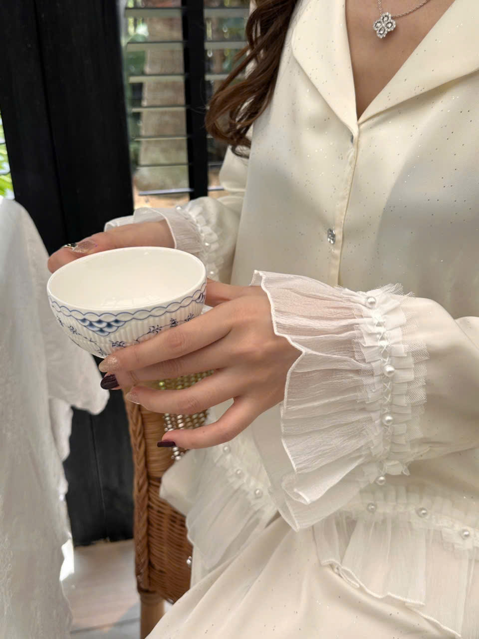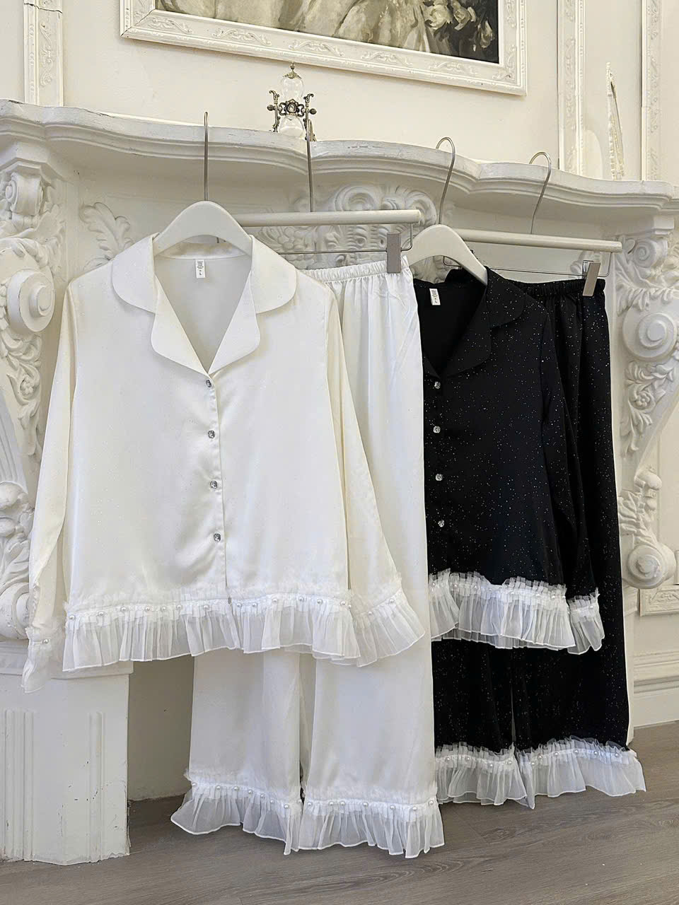 Gấu áo và gấu quần phối bèo voan mềm, xếp ly đều