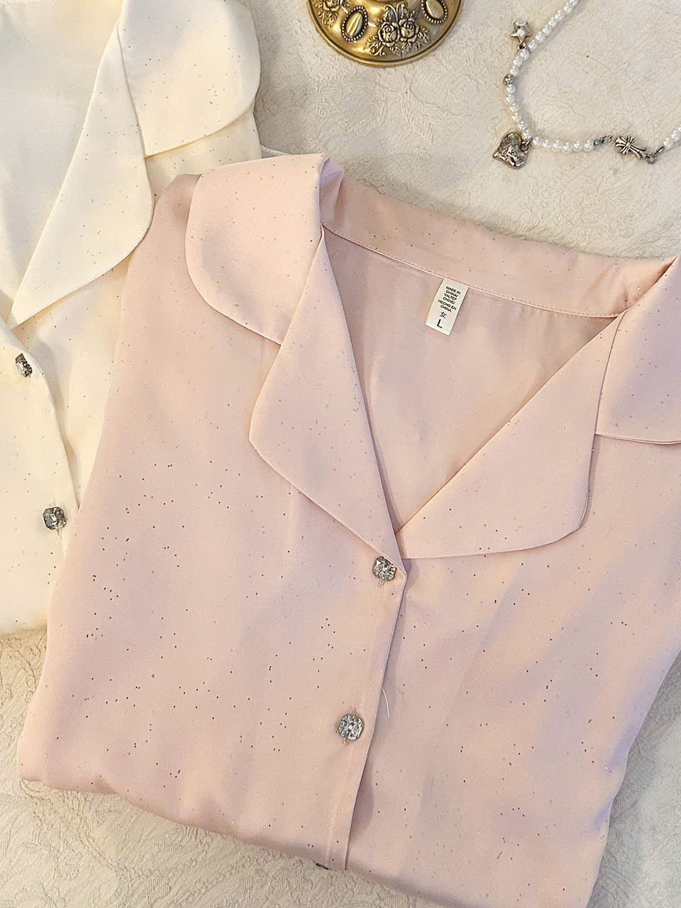 Áo form sơ mi tay dài, cổ bẻ mềm chữ V nhẹ, tạo cảm giác cổ cao và thanh thoát