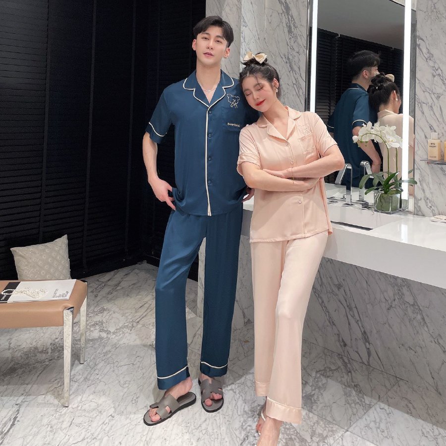 Mô tả : Đồ ngủ đôi Shury Store- CND16 nam nữ đồ bộ ngủ Pyjama couple tay ngắn quần dài chất lụa băng cao cấp phong cách hàn quốc