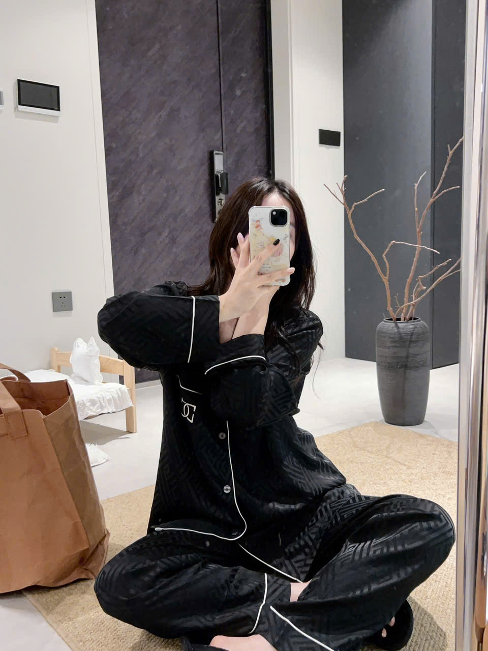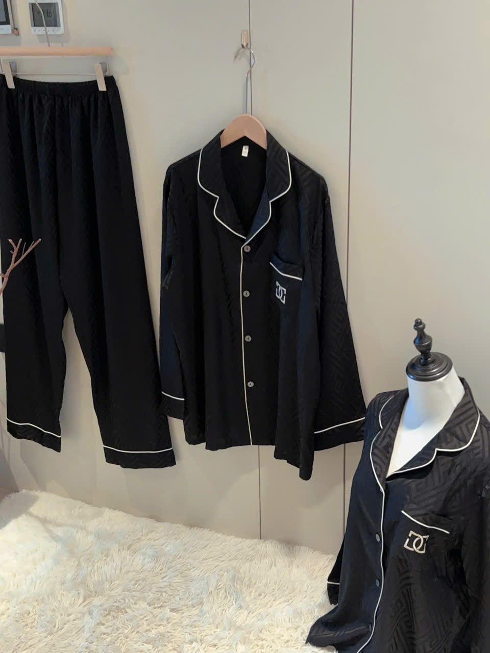 • Hoa văn chìm nhẹ – không lộ – không rối, càng nhìn càng tinh tế, đúng phong cách pyjama luxury