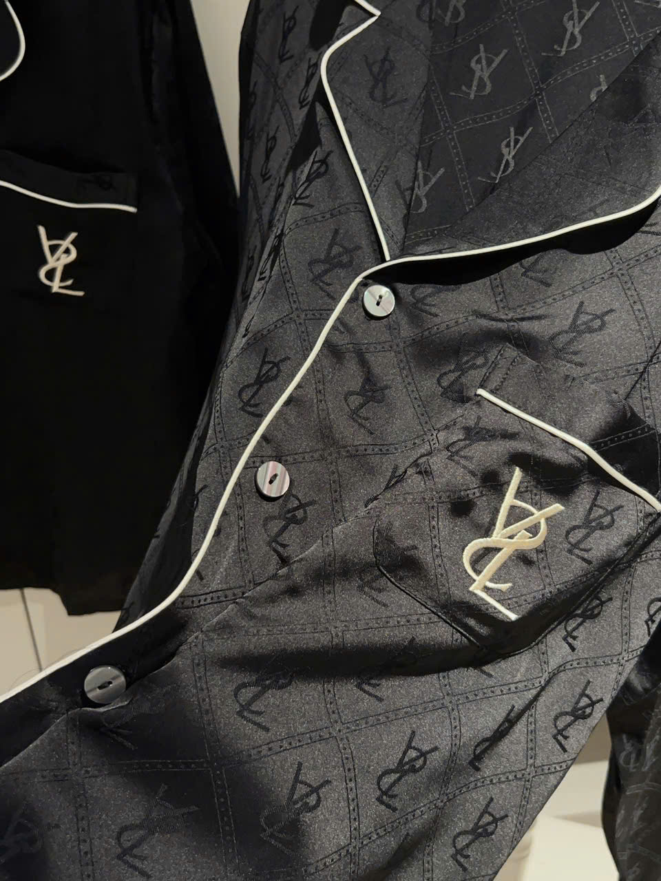 Form pyjama cổ vest cổ điển, hàng nút trước dễ mặc, tôn dáng nhưng vẫn rộng rãi, thoải mái.