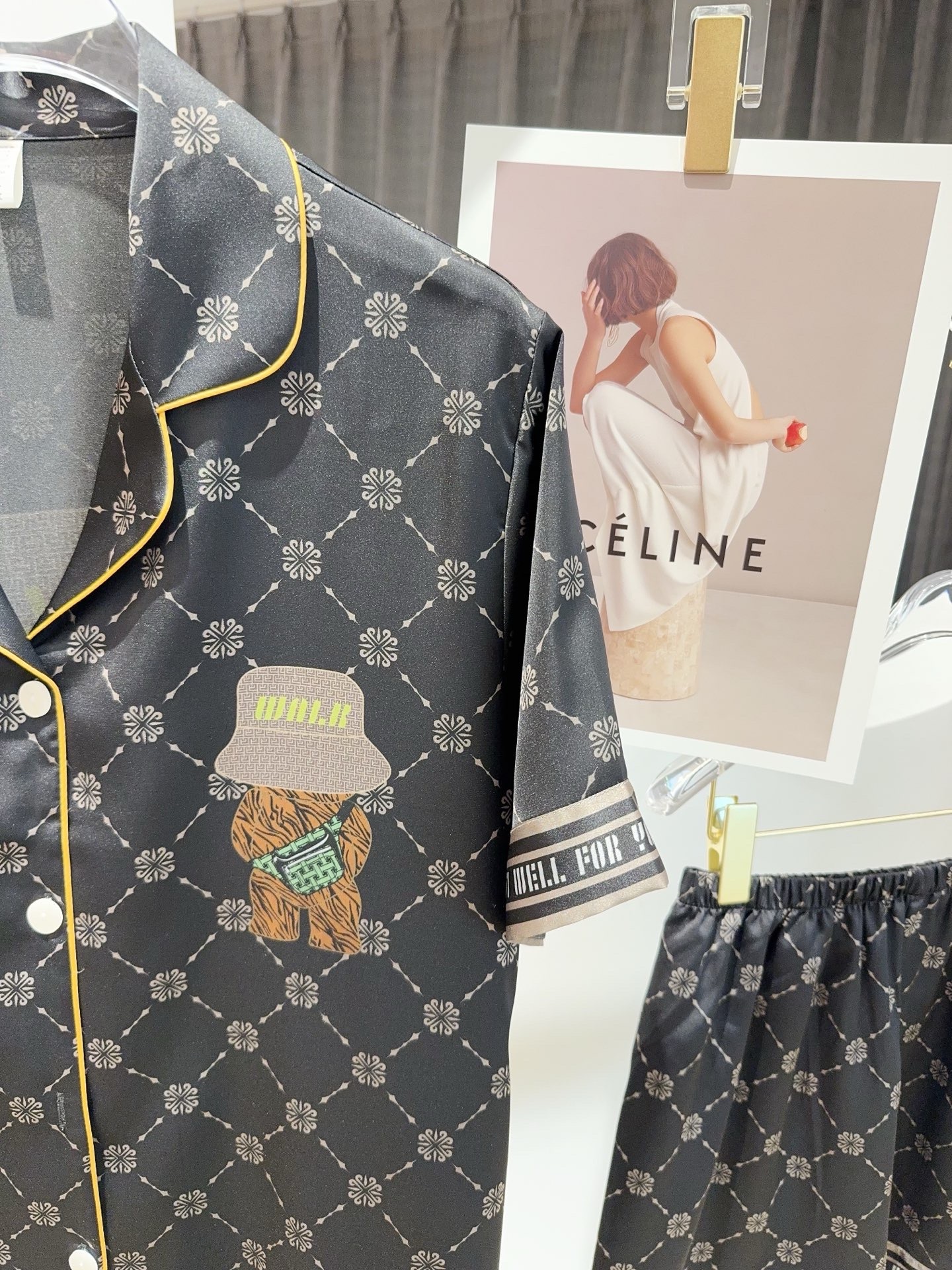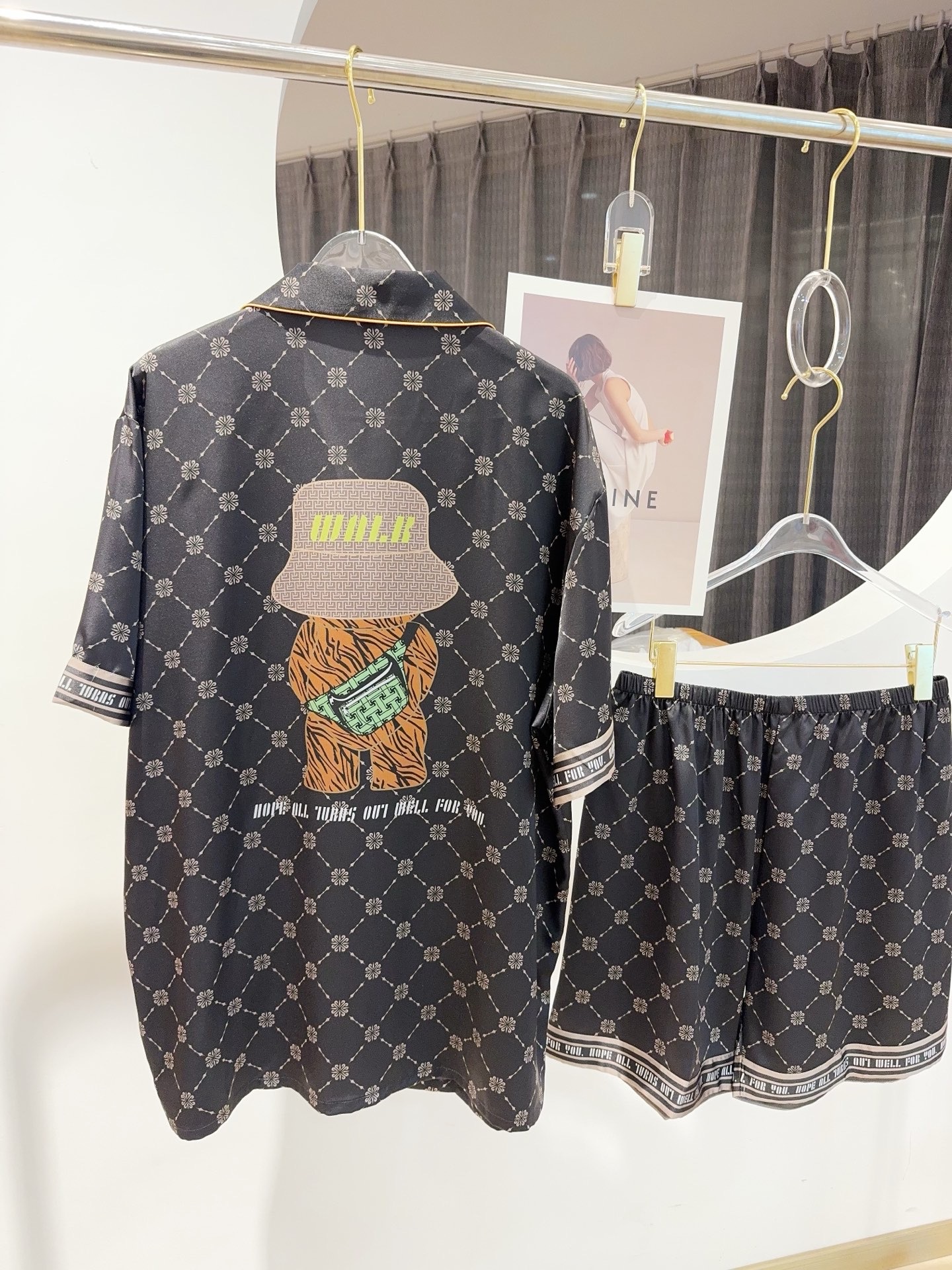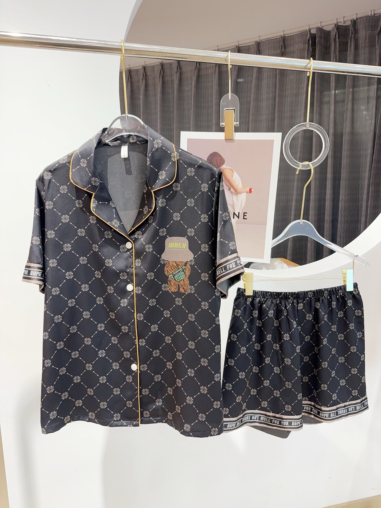 Cùng người thương diện ngay mẫu pyjama couple form unisex cực xinh với họa tiết gấu nón cá tính, chất liệu lụa băng mềm mát, thấm hút tốt, mịn nhẹ và thoải mái cho mọi chuyển động. Thiết kế cổ vest tay ngắn – quần short đơn giản nhưng nổi bật với viền bo chỉ nổi bật, mặc ở nhà hay chụp hình cặp đôi đều đẹp.