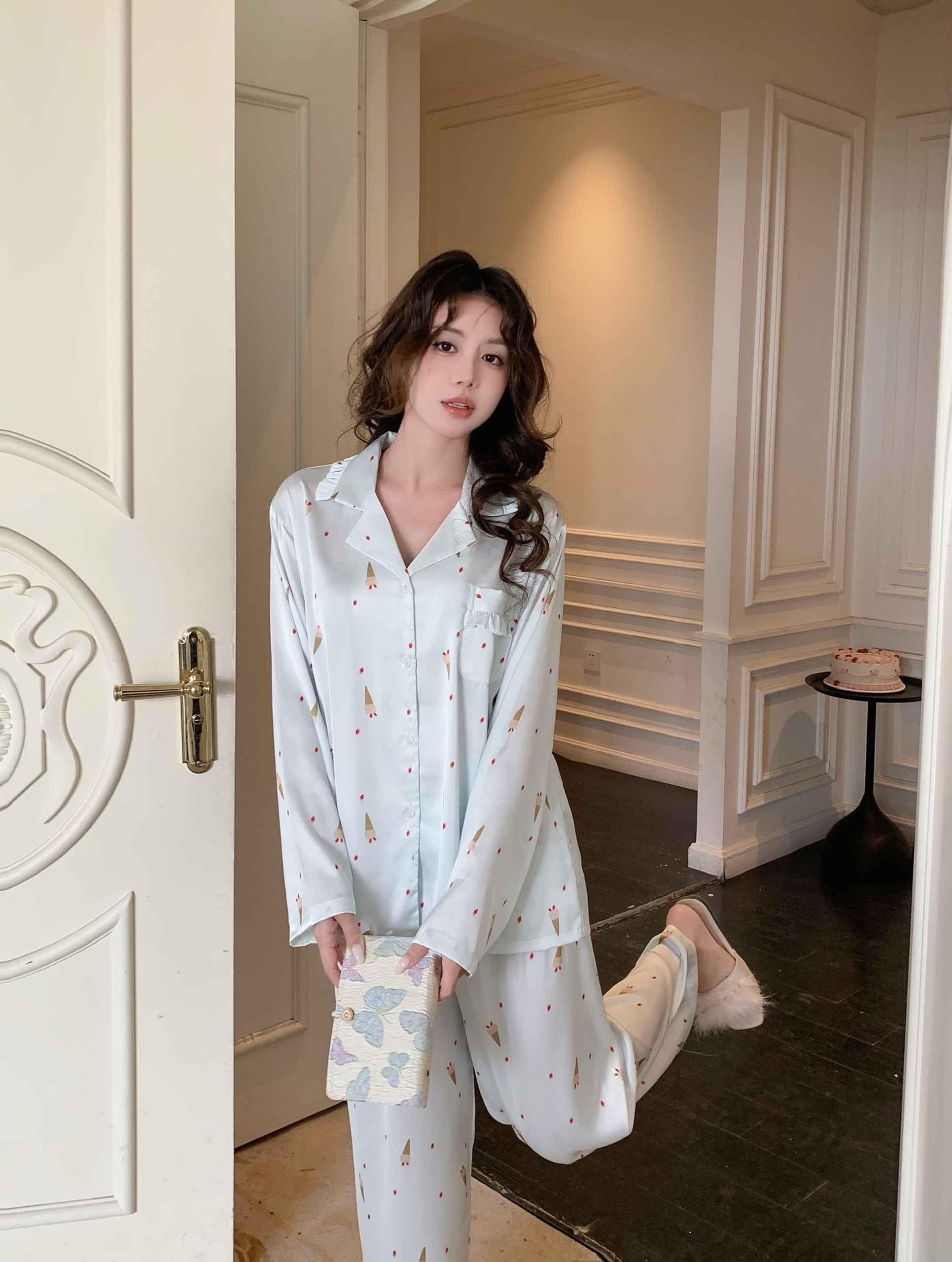 Sản phẩm gồm : 1 áo pijama tay dài + 1 quần lụa dài