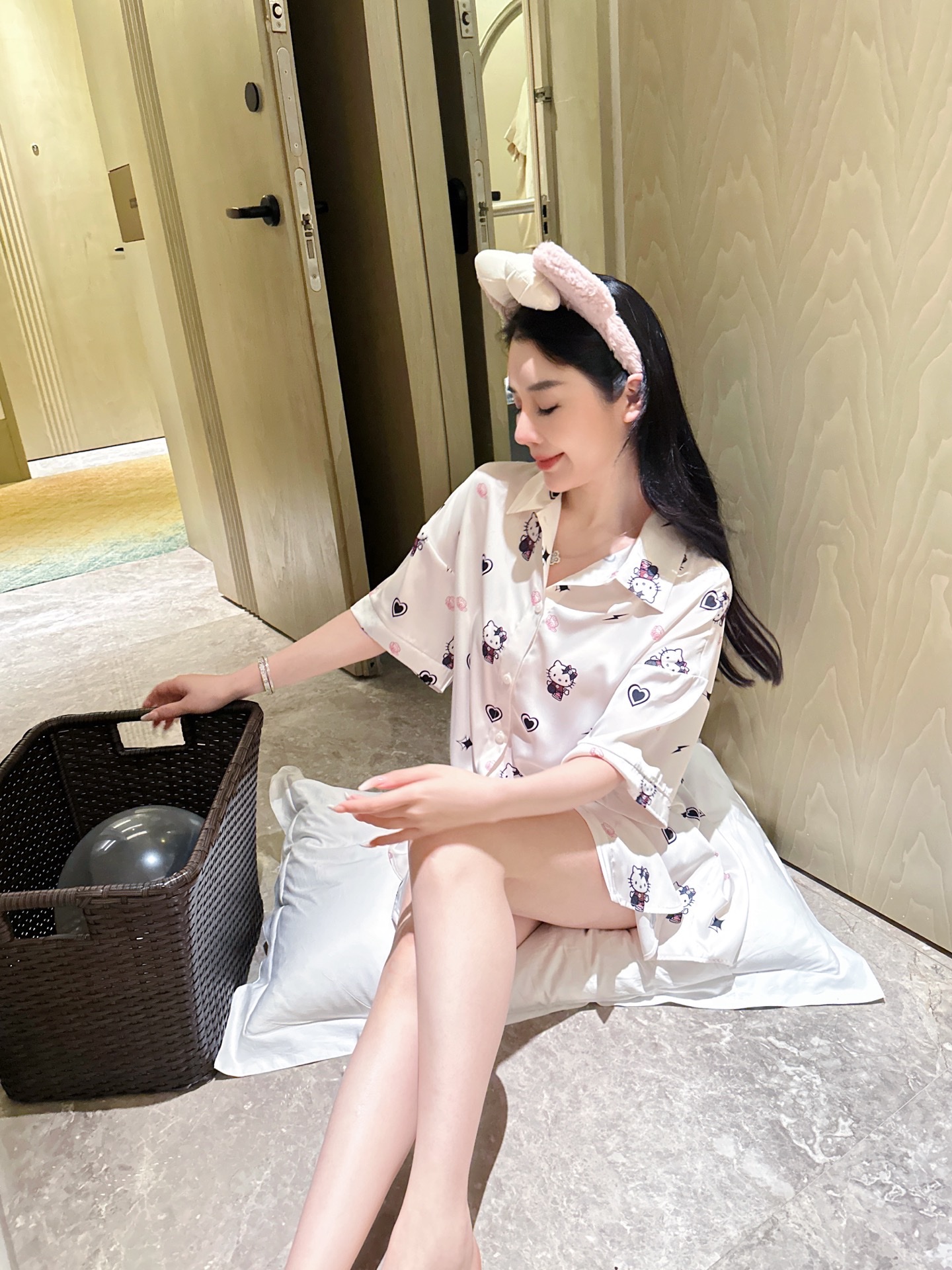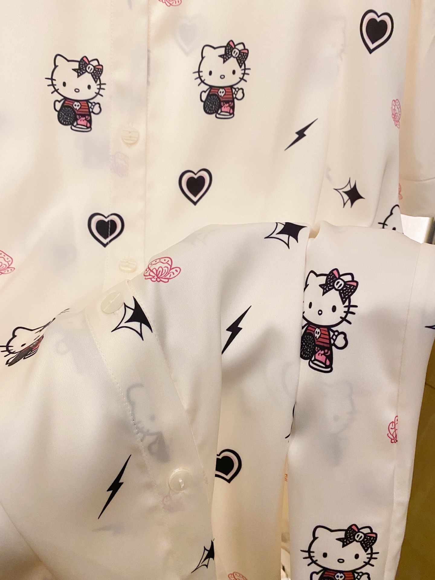 Thiết kế dáng suông nhẹ, chất liệu lụa băng cao cấp in hình Hello Kitty cực xinh, mang lại cảm giác mát lạnh, mềm mượt và thoải mái tuyệt đối – chuẩn style “nàng mèo đáng yêu Shury”.