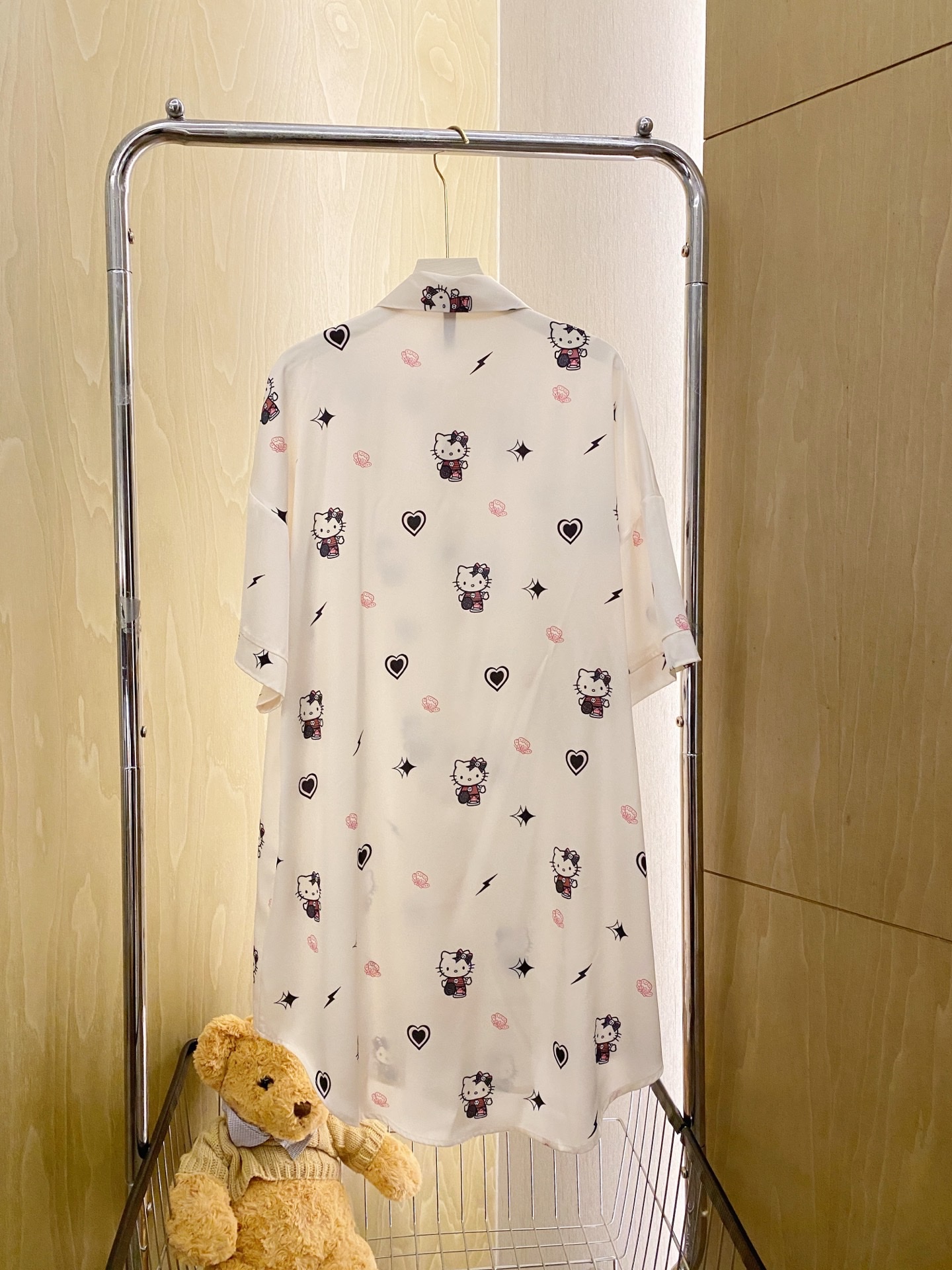 💖 Váy lụa sơ mi freesize in hình Hello Kitty dễ thương – màu trắng kem | SM22